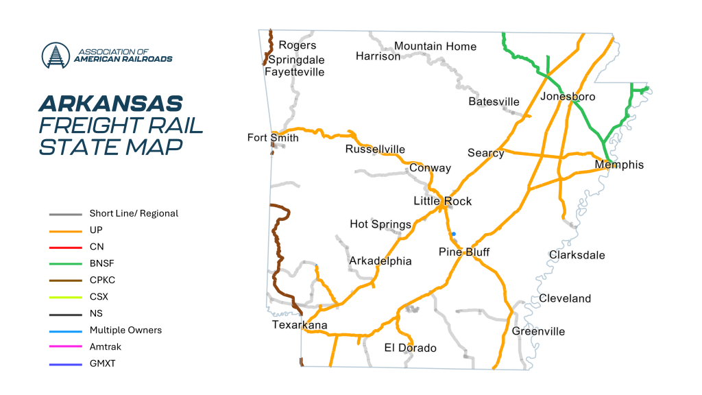 - Trucks off the Road: It would have taken 8.6 million trucks to handle the freight that moved by rail in Arkansas in 2022.