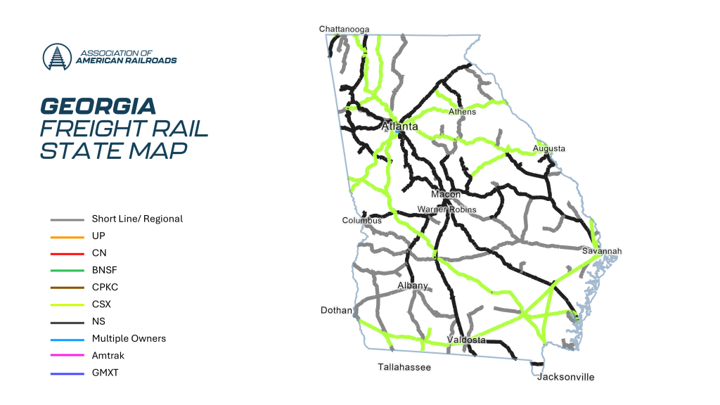 - Trucks off the Road: It would have taken 8.7 million trucks to handle the freight that moved by rail in Georgia in 2022.