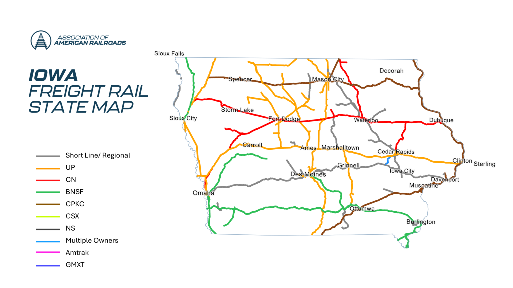 - Trucks off the Road: It would have taken 14.5 million trucks to handle the freight that moved by rail in Iowa in 2022.