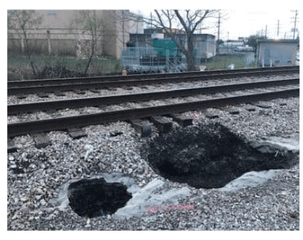 Unauthorized utility access can cause a sinking or carving of the track substructure (known as subsidence).
