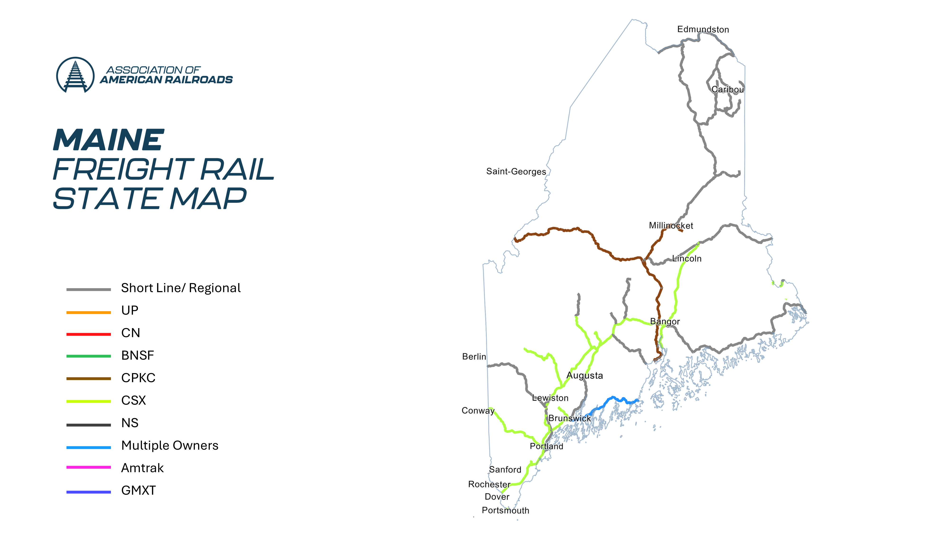 - Trucks off the Road: It would have taken 261,000 trucks to handle the freight that moved by rail in Maine in 2022.