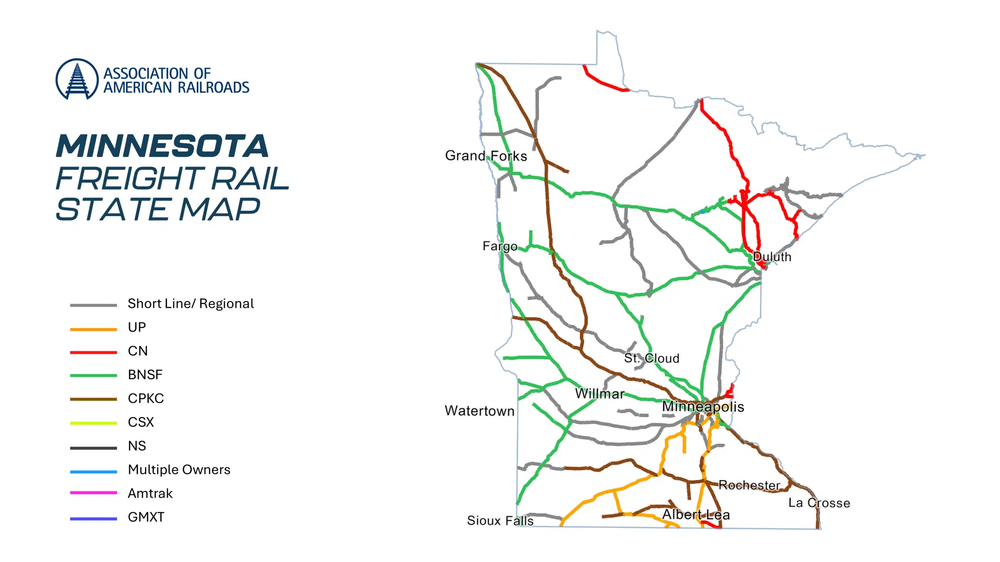 - Trucks off the Road: It would have taken 12.6 million trucks to handle the freight that moved by rail in Minnesota in 2022.