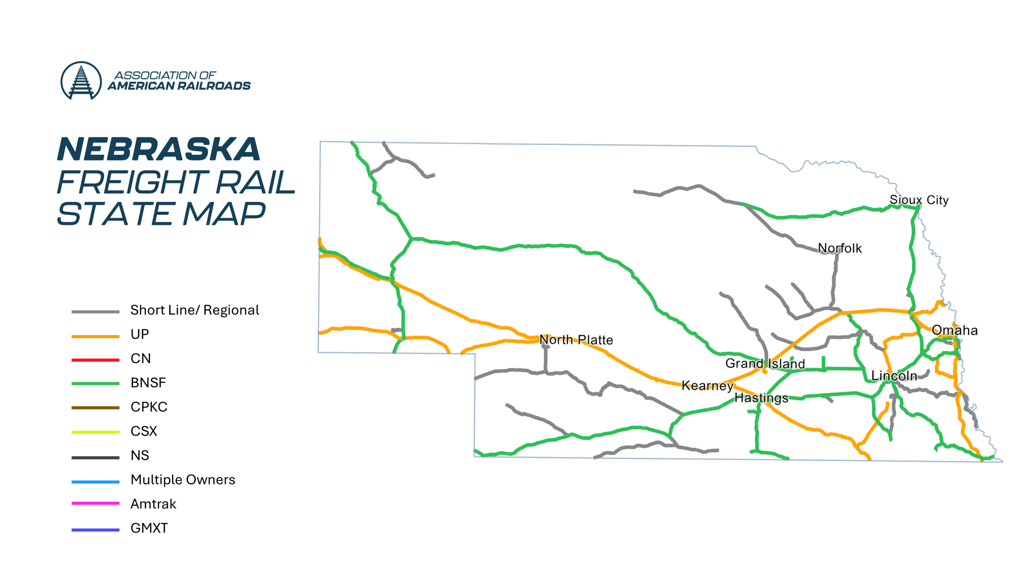 - Trucks off the Road: It would have taken 17.5 million trucks to handle the freight that moved by rail in Nebraska in 2022.