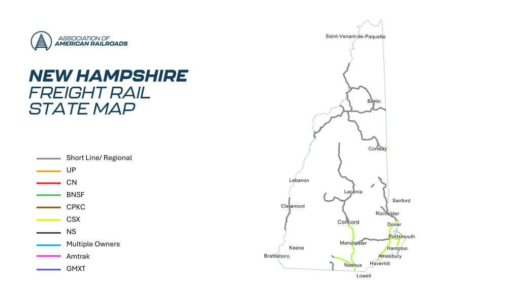 - Trucks off the Road: It would have taken 234,000 trucks to handle the freight that moved by rail in New Hampshire in 2022.