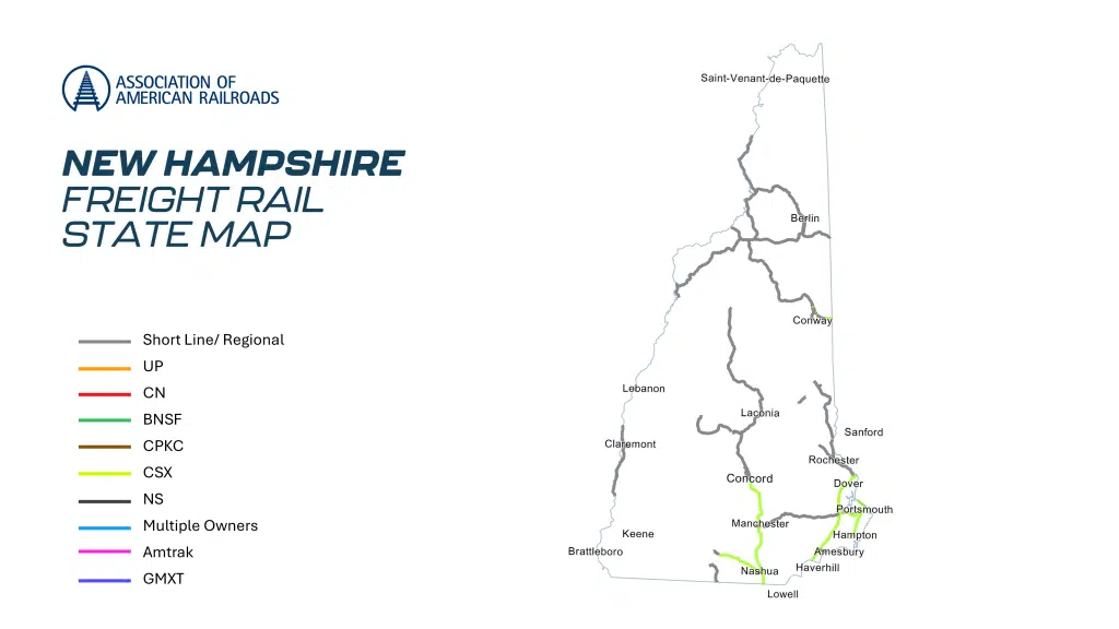 - Trucks off the Road: It would have taken 234,000 trucks to handle the freight that moved by rail in New Hampshire in 2022.