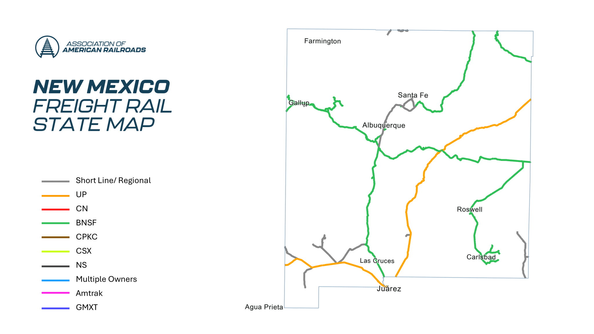 - Trucks off the Road: It would have taken approximately 378,000 additional trucks to handle the 6.8 million tons of freight that railroads originated in New Mexico in 2023.