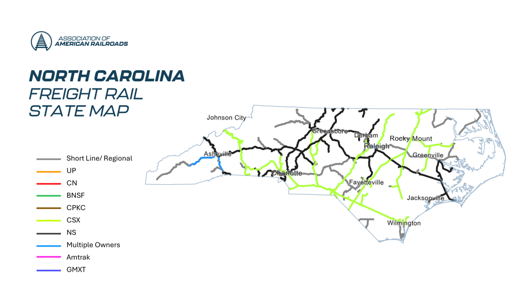 - Trucks off the Road: It would have taken four million trucks to handle the freight that moved by rail in North Carolina in 2022.