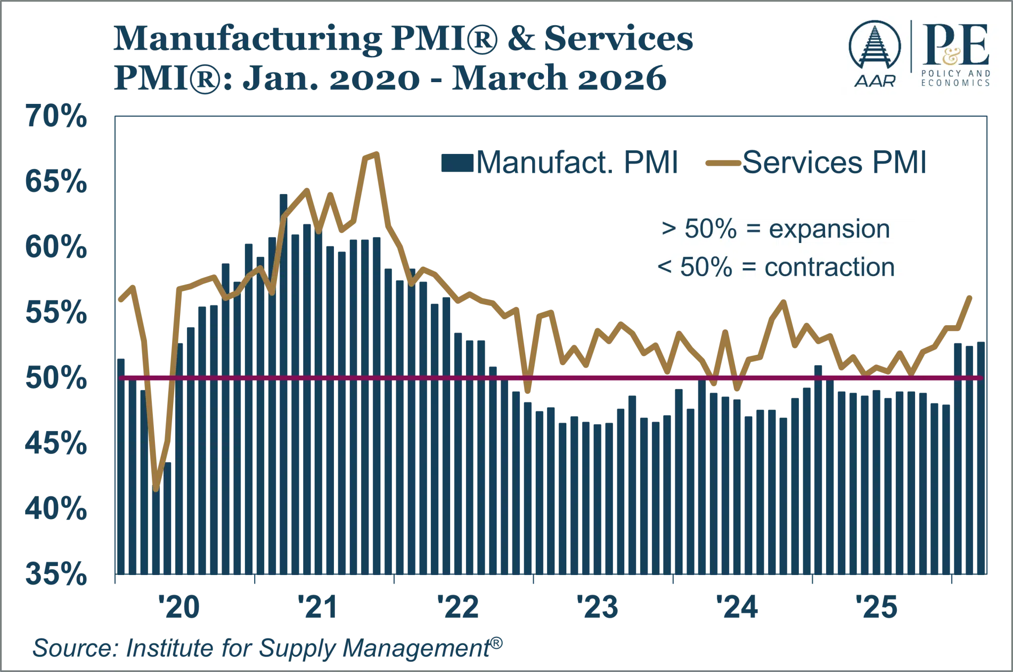 The service sector remains solid, reinforcing demand through consumer and business activity that is critical for intermodal and finished goods movements.