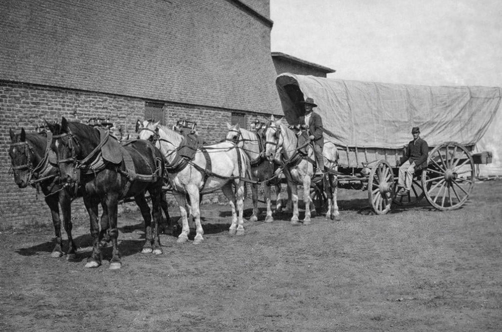 👆 Before railroads, grain moved by wagon — like the Conestoga — to mills or river ports, then downstream to market. The driver here sits on a “lazy board,” used for brief rests since these wagons had no front seat.