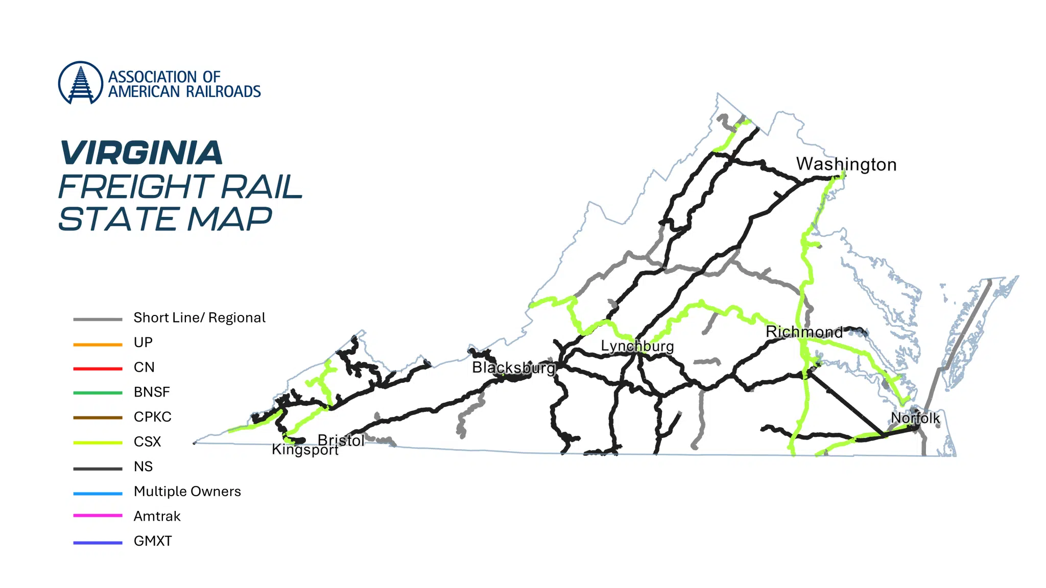 - Trucks off the Road: It would have taken 6.5 million trucks to handle the freight that moved by rail in Virginia in 2022.
