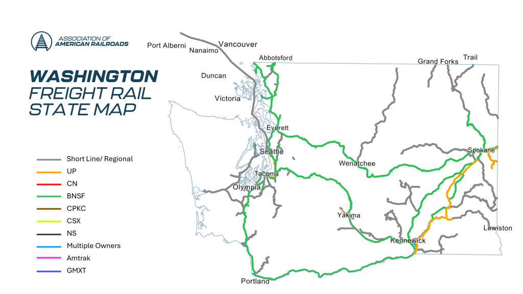 - Trucks off the Road: It would have taken 6.4 million trucks to handle the freight that moved by rail in Washington in 2022.